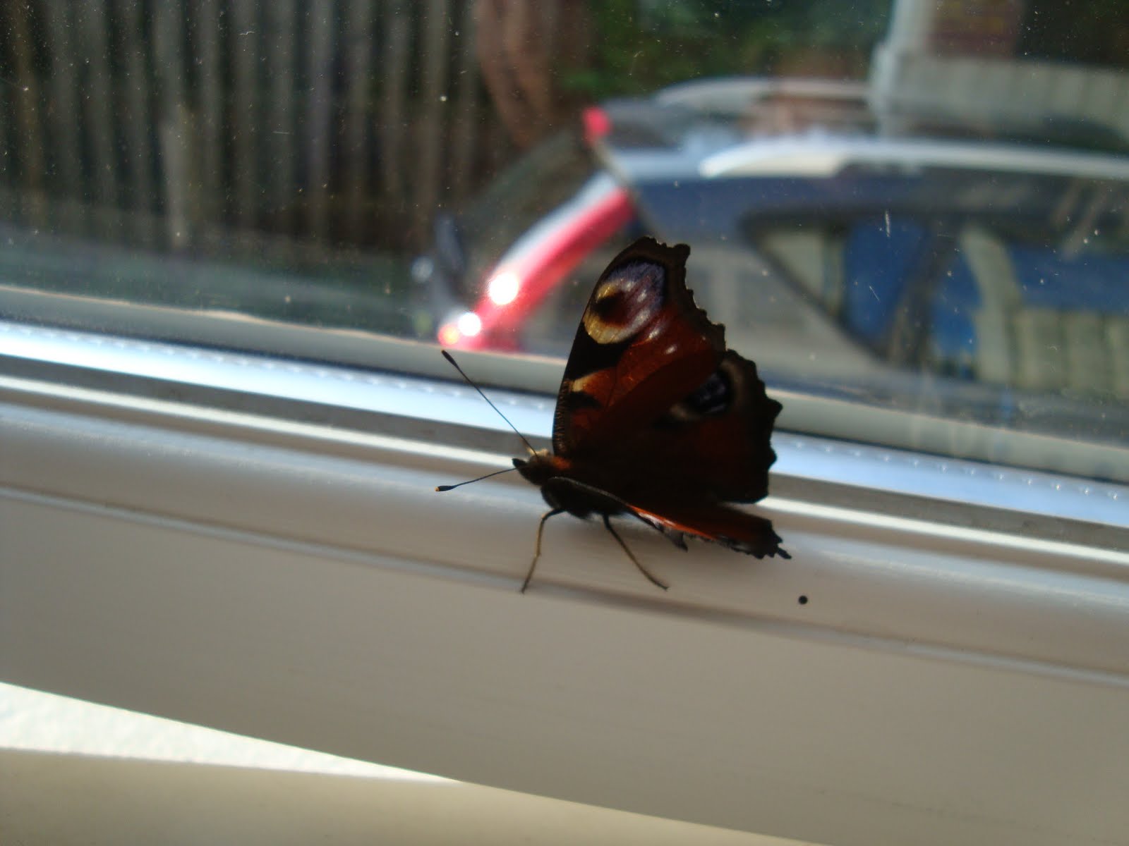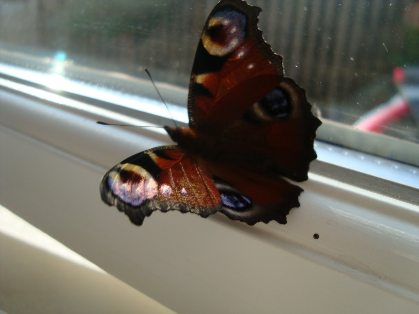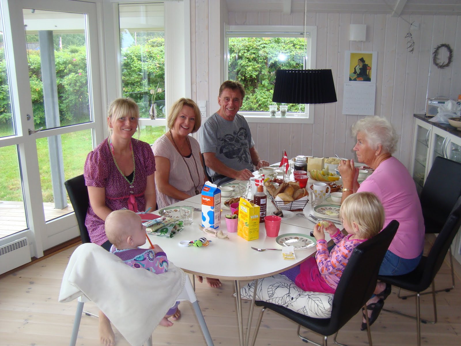 Imorges startede dagen så kl. 05.00 her i hytten, det er en af “glæderne” ved små børn… Man kommer ligesom op og får oplevet dagen. Men idag var det faktisk ret hyggeligt, for en lille sommerfugl havde sneget sig ind i vinterhaven, og den var Merle godt nok noget optaget af… Det var helt svært at overtale hende til, at vi skulle lukke den ud igen.