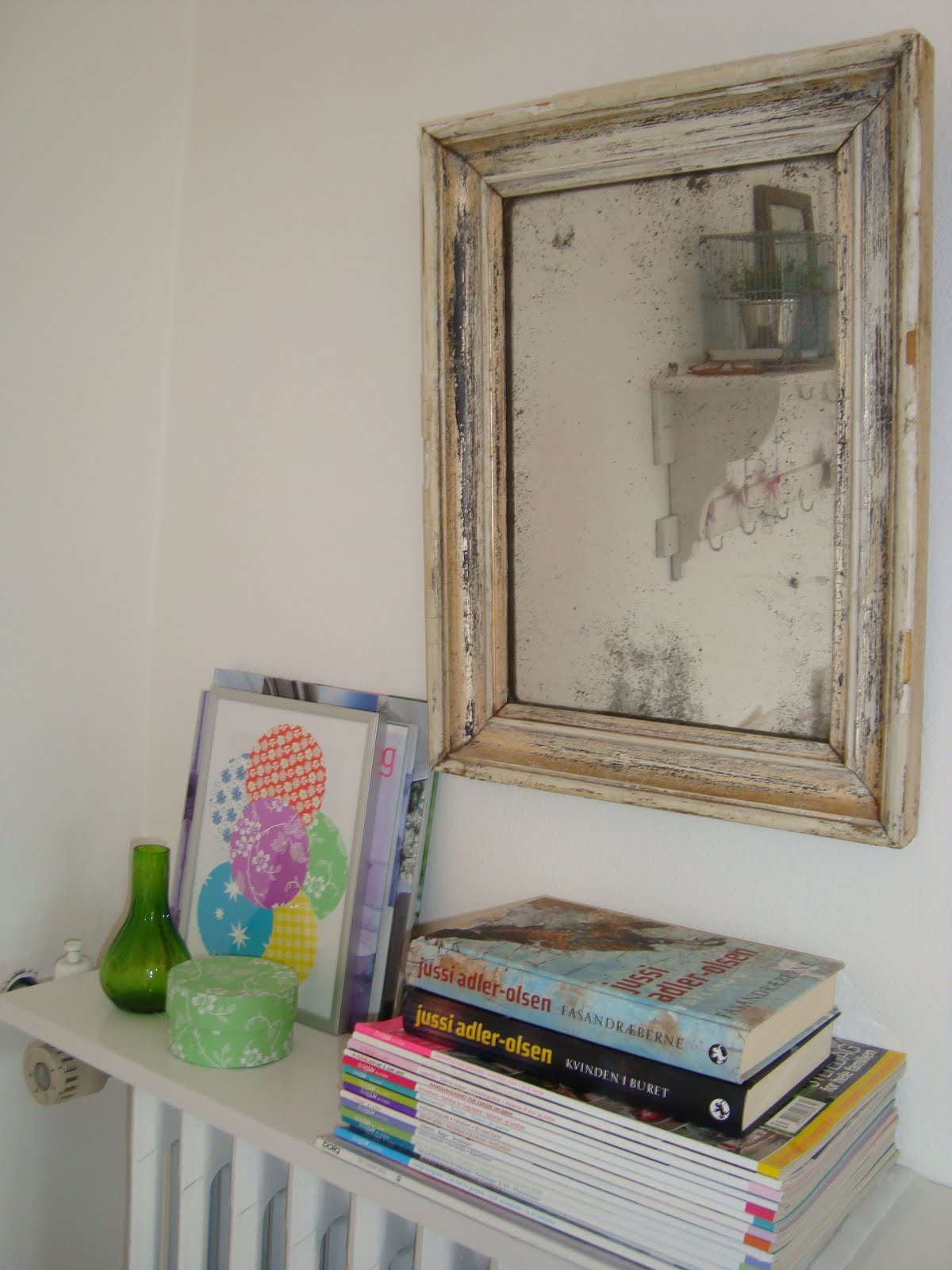 Den store ramme er et billede Merle har lavet i dagplejen, jeg sys faktisk det er ret fin i farverne, så det SKULLE i hvert fald op og hænge. De andre er hvad jeg sådan lige havde liggende…. Vil jo egentlig ret gerne have sådan en stor væg med en masse rammer, Og meget gerne de der grafiske print, er bare ikke lykkedes mig at finde en dansk side hvor man kan købe dem endnu. Og her i huset har vi desværre ikke ret meget væg, tror derfor ikke det blir en mulighed så længe vi bor her.