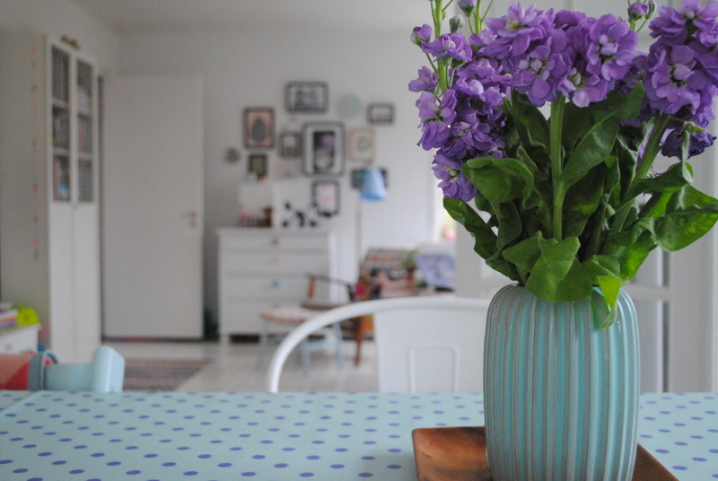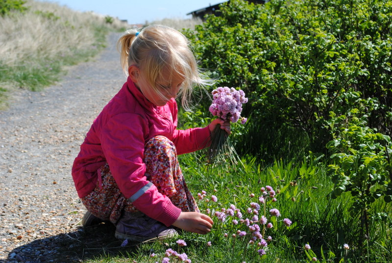 Neel har nu også fået øjnene op for blomsterplukning, og bordet var derfor fuld at fine buketter, og de dufter i hele stuen. Jeg har nemlig taget dem med mig hjem…