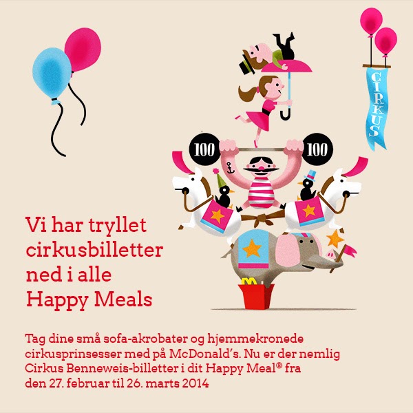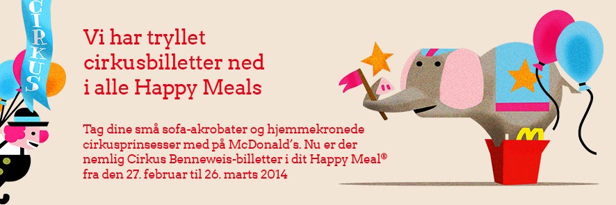 Igen i år sker der noget helt magisk i Happy Meals hos McDonald’s, fra nu og frem til d. 26 marts er der en gratis billet til Cirkus Benneweis med i dit barns Happy Meal.