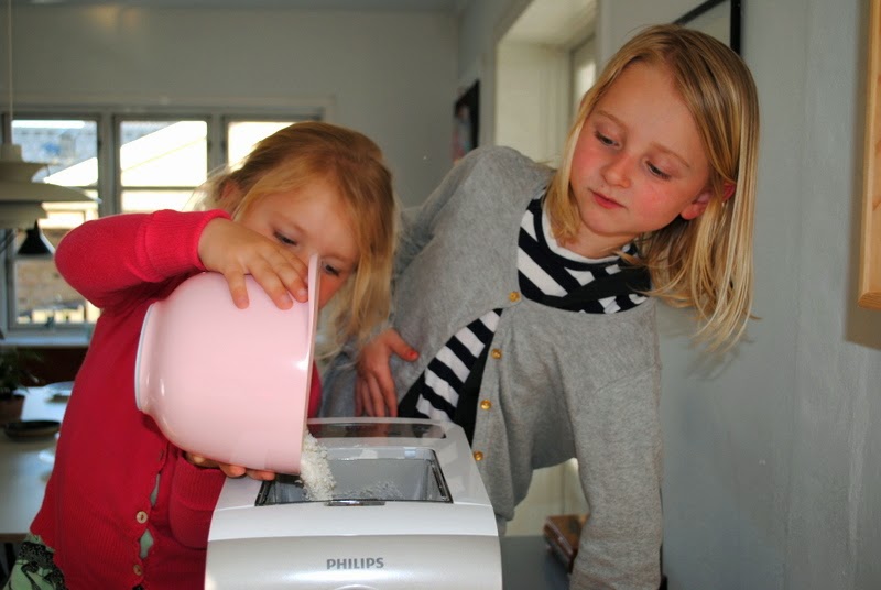 Pigerne spørger stadig efter frisk pasta hver dag, men på egen maskine…. Normalt er vi ikke sådan nogen der går vildt meget op i økologi og E numre, men på en eller anden måde, så synes jeg bare ret godt om, at vi her har helt styr på hvad det er pigerne spiser, og så er det en lækker fornemmelse når det hele er hjemmelavet. Jeg er virkelig fan…