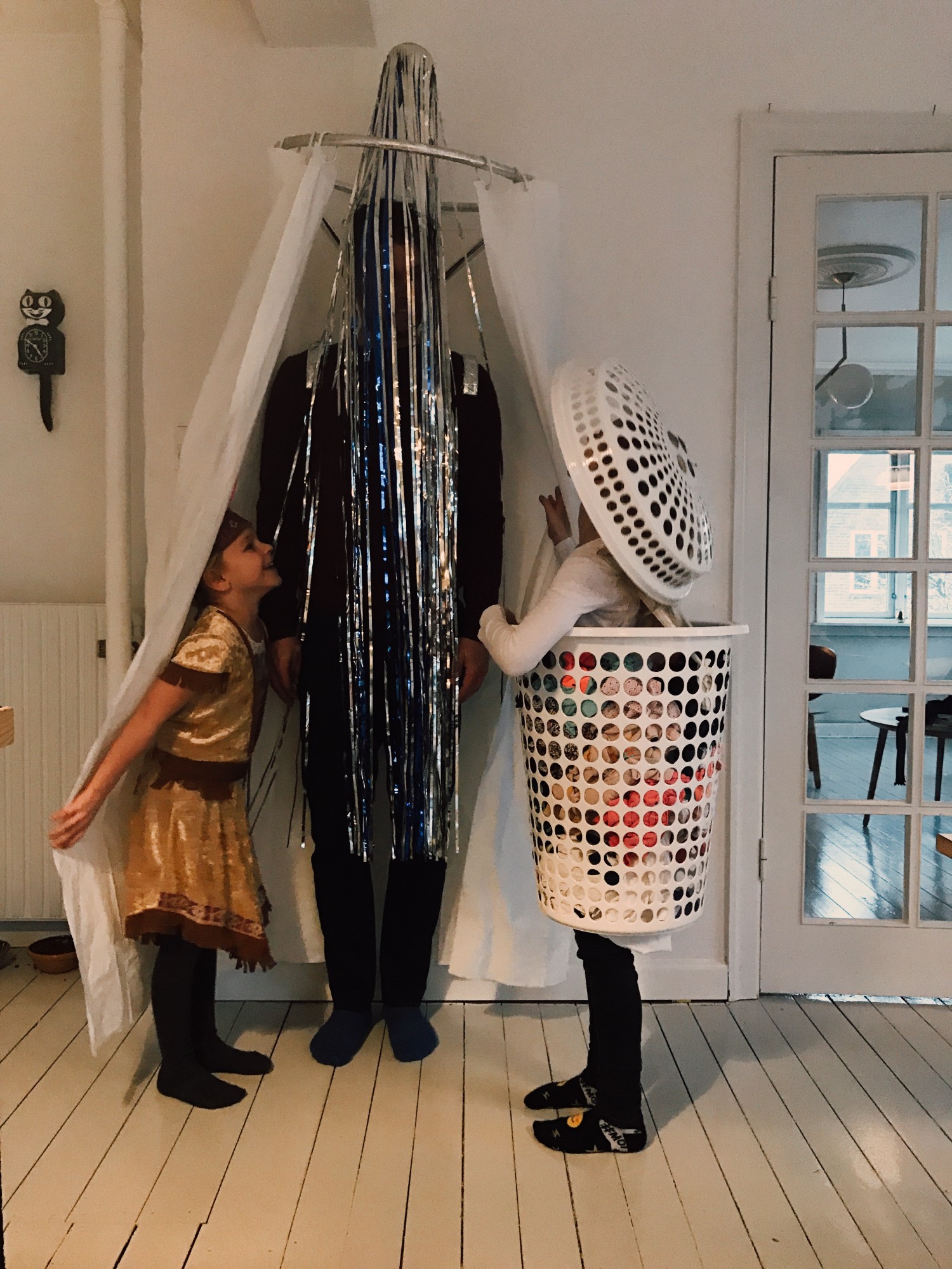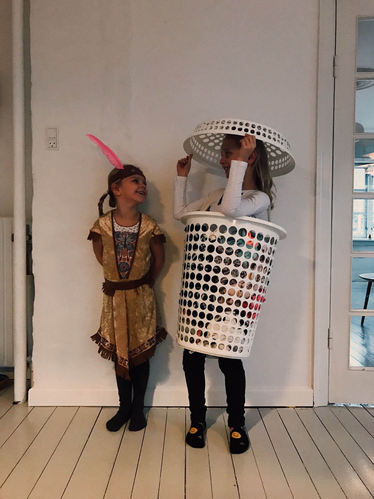 Jesper var udklædt som brusebad, Merle som vasketøjskurv og Neel som indianer…. Jeg har aldrig været særlig vild med at klæde mig ud, så det var jeg altså ikke, og jeg indrømmer blankt, at det var mit humør så heller ikke lige til igår. Men min familie så herlige ud, og der var også stor begejstring for deres udklædning….